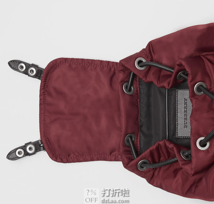BURBERRY 巴宝莉 女士The Rucksack -系列勃艮第酒红色混纺小号斜背式军旅背包 40759701,京东商城好评率100%,现秒杀价¥4999包邮,国内BURBERRY官网售价¥10800。