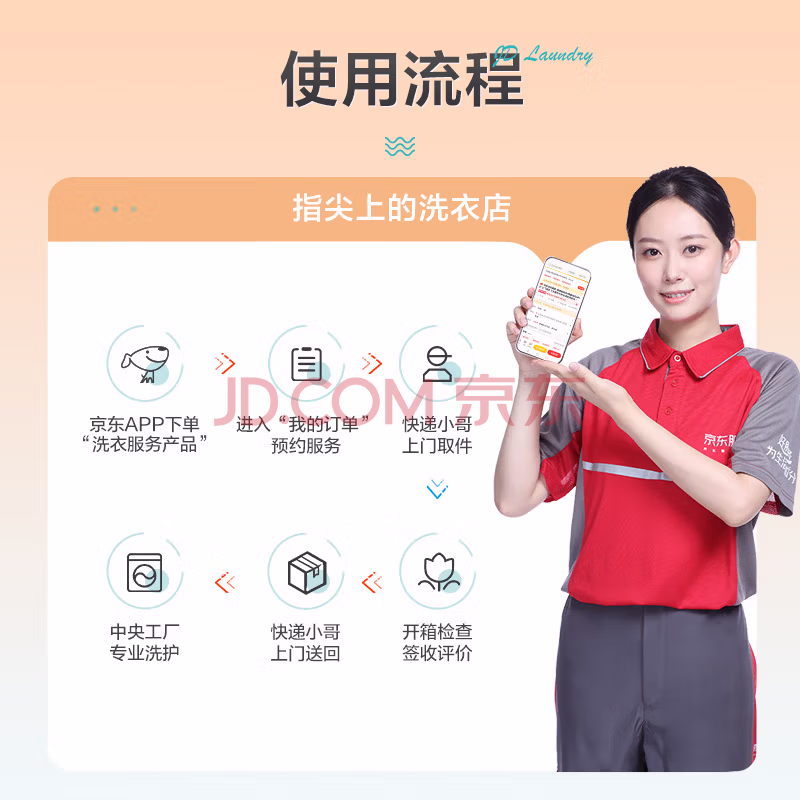 京东洗衣服务 衣服任洗5件1次 上门取送价值2000元内四季衣服,京东商城好评率96%,现售价¥148.8,领取¥60京东优惠券,实付¥188.8包邮,免费上门取送,支持收寄异地,杀菌消毒,清洗时间流程可见。