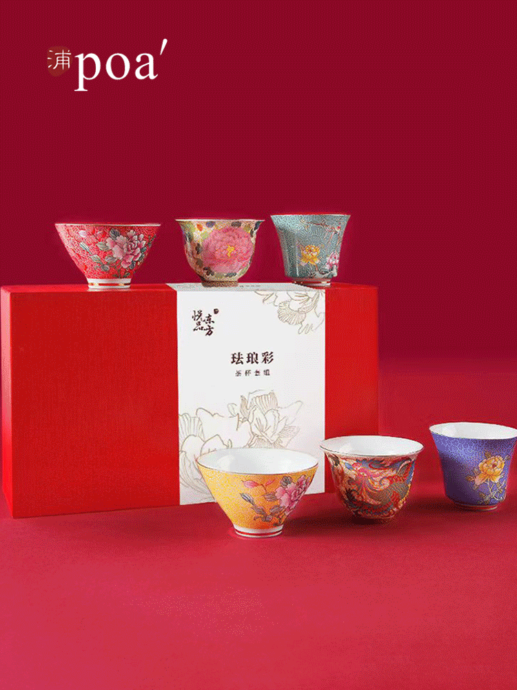 这款POA' 浦 珐琅彩品茗茶杯6件套,满彩珐琅设计,各具特色。富贵华丽的色彩很显东方底蕴。精致的珐琅工艺,古法制瓷,手感丝滑。杯口描金,内部瓷质光滑洁白。礼盒包装,送礼自用都不错。