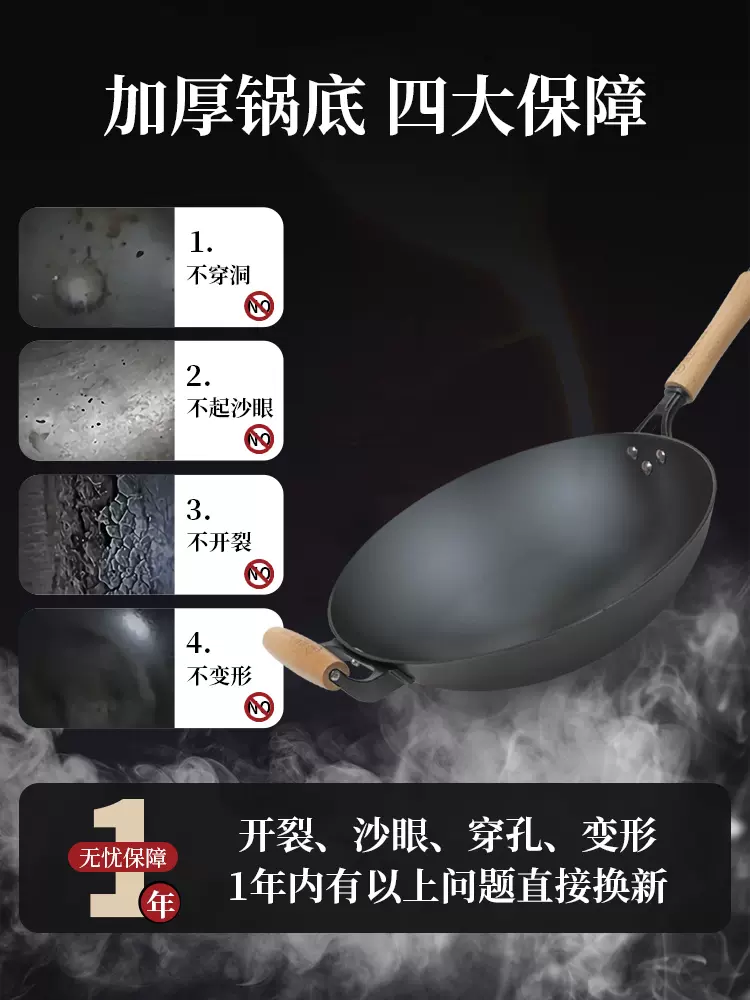 这款盛邦 陆川铁锅 32cm 乐享款,生铁打造,加厚锅底4大保障,全身渗氮室化处理,锅体表面形成致密防锈层增加锅体的耐磨性,表面硬度可抗蚀能力使用更健康、更安全,清洗无残留,无涂层,轻油烟。