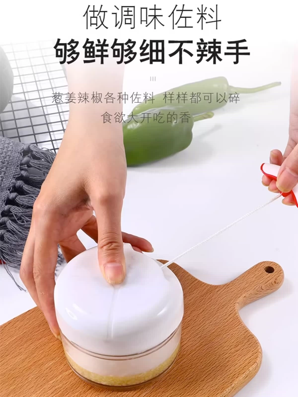 这款利瓷 手拉厨房料理机,葱姜辣椒各种佐料都可轻松一拉,蒜泥、辅食、酱料一机搞定,轻松做菜,节约时间。食品级杯体,坚固耐摔,容量170mL,流行性外型符合人体工学设计,使用方便,加固刀片,碎冰也无压力,磁性刀柱,自动吸附,拇指凹坑设计,使用更便捷,拉绳更准确,无裙边设计,避免食物残留,滋生细菌,卡扣设计,防止滑落,金属拉绳口,更加耐用。剁椒佐料还是给宝宝做辅食都非常的方便,不累手不辣眼睛,操作简单,省时省力 。