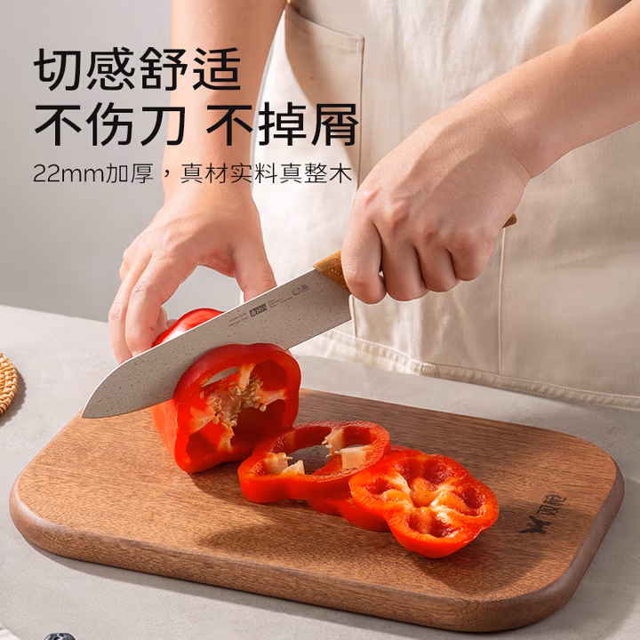 双枪 乌檀木整木加厚抗菌防霉切菜板砧板 10202049170629,非洲刚果金进口乌檀木,整木芯材取材,切感舒适,不伤刀,不掉屑。含天然抗菌物质-檀香醇,天然抗菌率99.9%,0漆0蜡0甲醛,入口更安心,孕妇婴儿放心使用。贴心挂孔设计,可悬挂收纳不占台面空间。