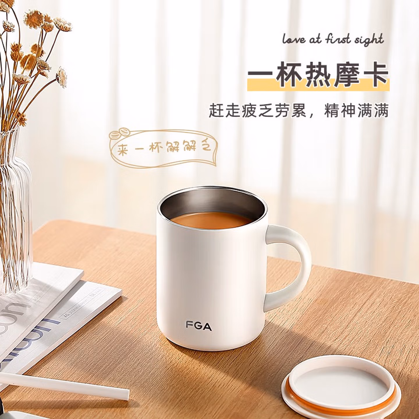 富光不锈钢保温杯马克水杯子大容量办公泡茶咖啡男女士便携简约带盖 ,京东商城好评率98%,现富光旗舰店售价¥49.9,领取¥10京东优惠券 ,实付¥39.9包邮。 这款FGA 富光 316不锈钢 真空保温马克杯 DAZ4401,316不锈钢无缝内胆,抗氧化,耐腐蚀,易清洗,更健康。大口径,洁净无死角,清洁不费劲。双层真空设计,保温保冷。单手易启,防尘密封杯盖,杯盖内嵌硅胶密封圈,防尘+辅助保温。