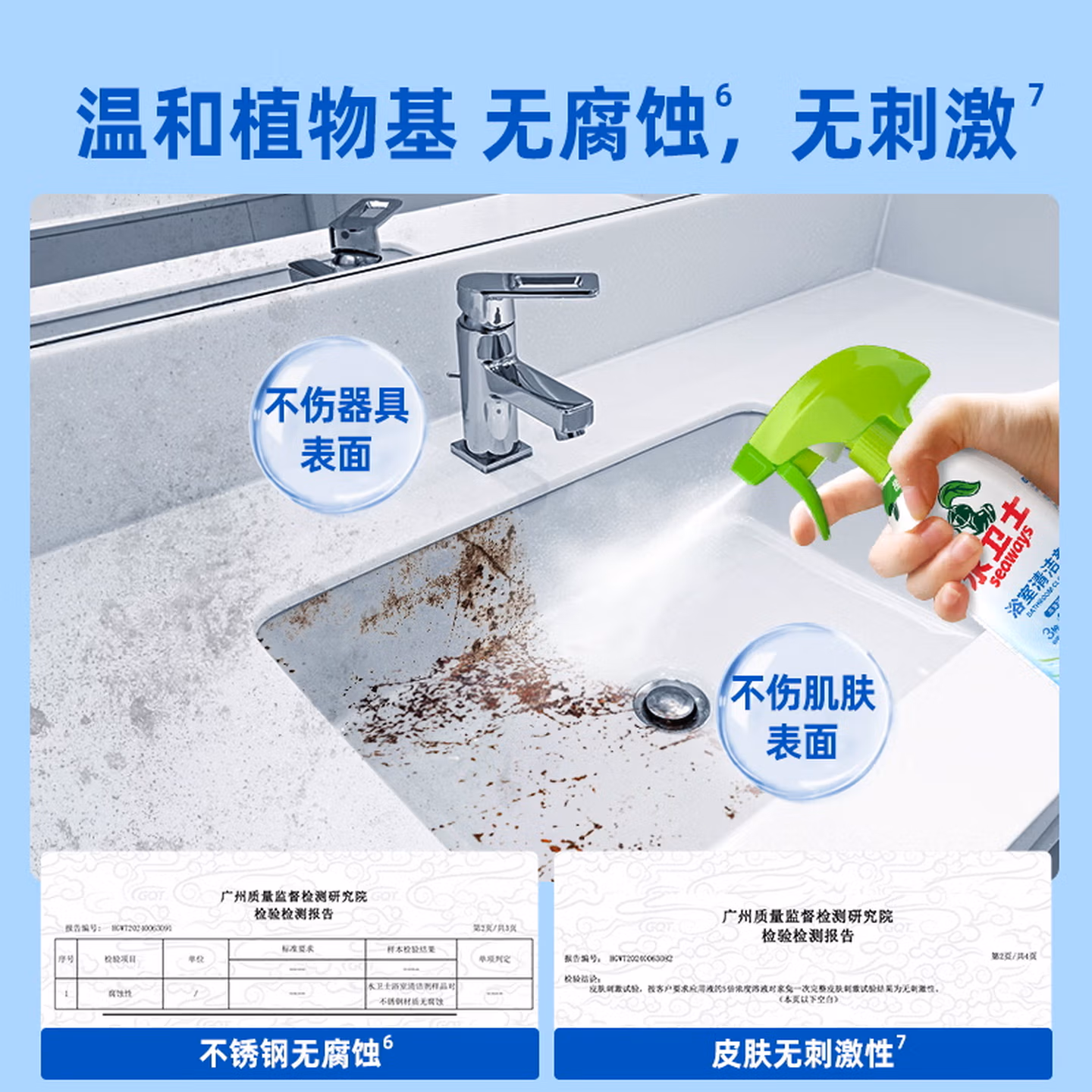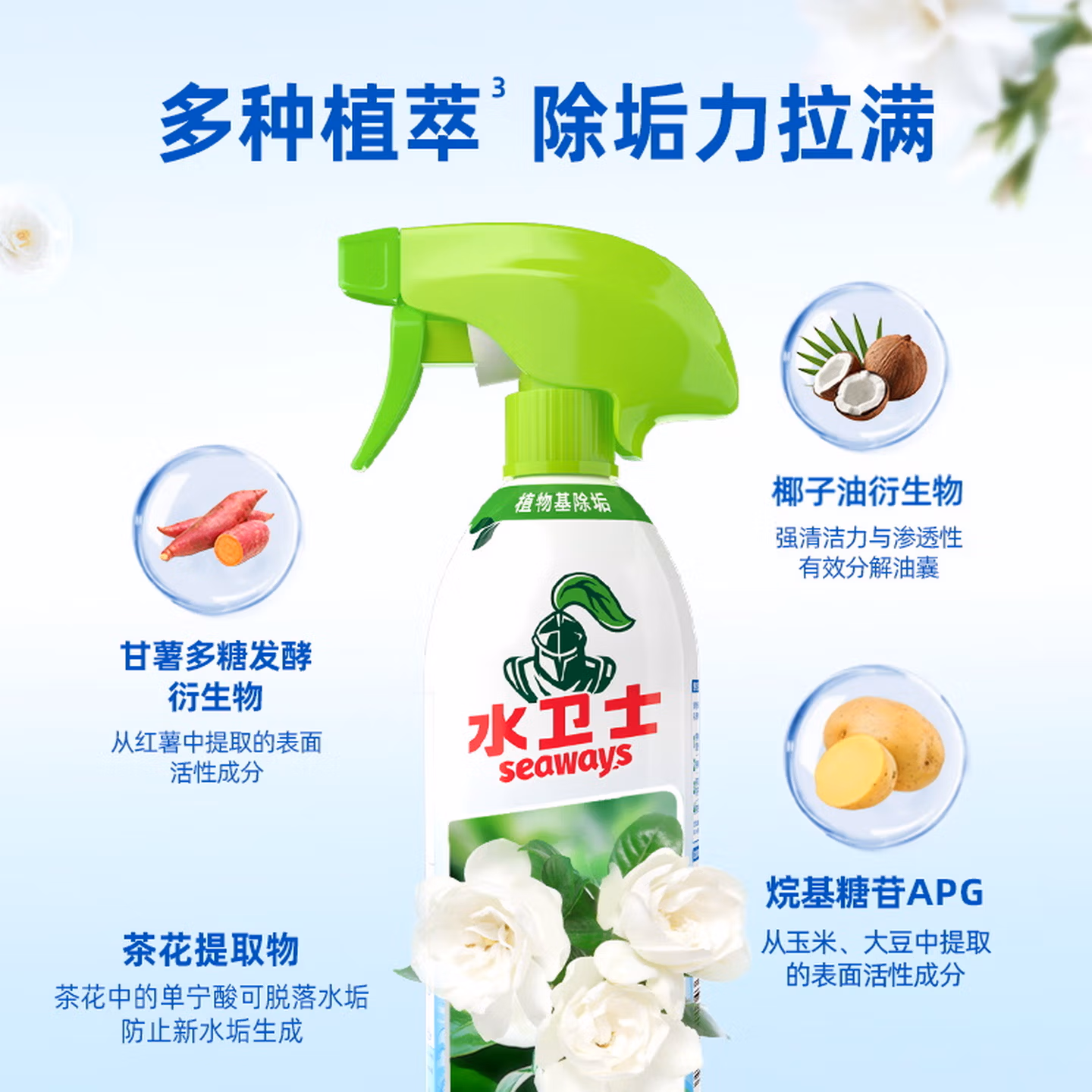 水卫士浴室清洁剂 玻璃清洁剂瓷砖浴缸水龙头花洒除水垢清洁剂除水卫仕 浴室清洁剂*500g*3瓶,京东商城好评率98%,现水卫士官方旗舰店售价¥29.9,领取¥10京东优惠券 ,实付¥19.9包邮。 这款Seaways 水卫士 浴室清洁剂,椰子油衍生物、甘薯多糖发酵衍生物、茶花提取物、烷基糖苷APG植物基配方,多种植萃,酸性植物基配方分解污垢结构,水溶性络合物预防污垢再生,水溶性络合物预防污垢再生,99.9%除菌率,一喷闪光浴室,不伤釉面、瓷面。