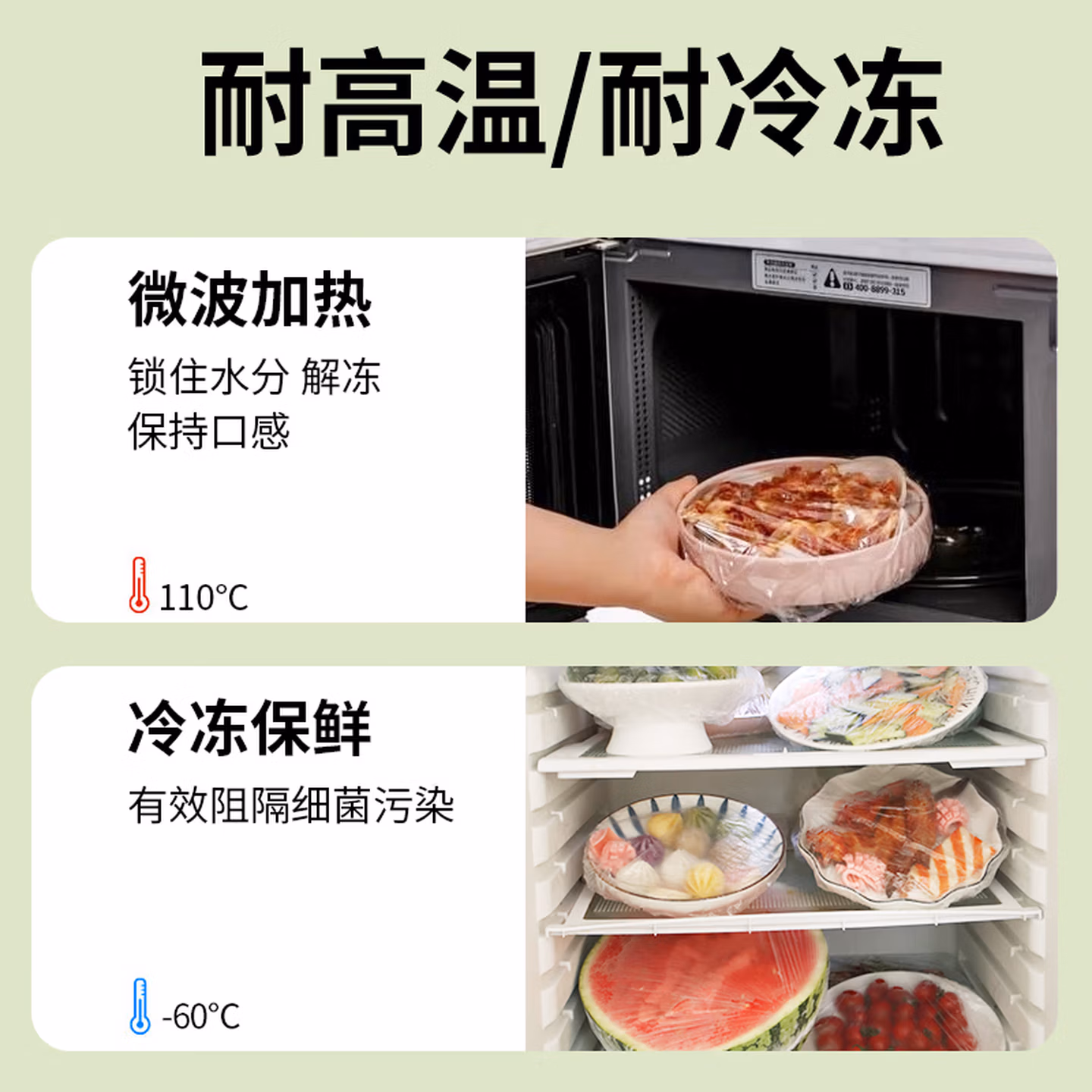 洁成一次性保鲜罩碗罩食品级套膜弹力松紧口 5包共1000条【约1年用量】,京东商城好评率98%,现洁成旗舰店售价¥29.8,领取¥10京东优惠券 , 实付¥19.8包邮。 这款洁成 PE食品级保鲜膜套 ,全新食品级PE健康材质更安心,耐高温耐冷冻,加厚材质更加耐用,滴水不漏可重复使用。松紧口更加密封贴合碗盘,持久保鲜不串味,包裹碗盘更轻松。碗盘通用,不受碗型限制。