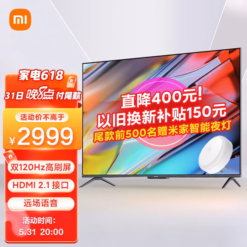 Redmi 红米 游戏电视 X,包括55英寸和65英寸两个版本,120Hz刷新率面板,支持MEMC动态补偿,拥有94% DCI-P3色域,△E≈2;音响系统由2*12.5W扬声器组成,并采用双风管低音增强设计;支持杜比视界及杜比全景声;提供1个HDMI2.1接口,支持VRR可变刷新率和ALLM自动低延时,并通过AMD的FreeSync Premium认证;搭载四核A73架构处理器,3GB内存+32GB存储空间;边框及底座都为金属材质,全面屏设计,拥有97.3%高屏占比;内置MIUI for TV 3.0系统,支持远场语音操控。