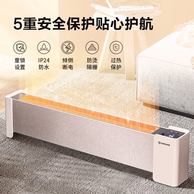 艾美特(Airmate)“温室系列”取暖器/电暖器/电暖气片家用石墨烯低噪节能 母婴级肤感防烫踢脚线 HD22-R34,京东商城好评率97%,现秒杀价¥479,下单立减100元,可领取¥100京东优惠券,实付¥279包邮。