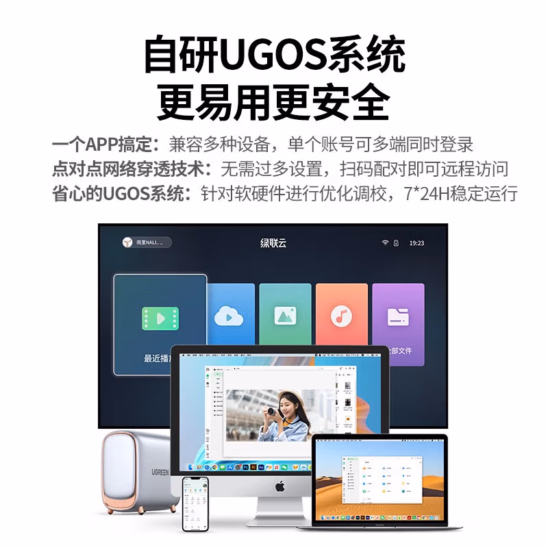 UGREEN 绿联 DH2600 NAS网络存储服务器 双盘位,搭载X86架构Intel Celeron N5105芯片,无论日常使用,还是多用户共用,各种任务,统统胜任。4核4线程,10nm工艺,标配4GB内存,并预留内存插槽,上限扩展16GB。支持两条M.2固态硬盘插槽,多人、多任务运行更稳定,2.5G高速网口,多设备兼容,底部和后部采用镂空设计,搭配“双轴承轻音风扇” 散热更强劲,进风口还可拆卸清洗。