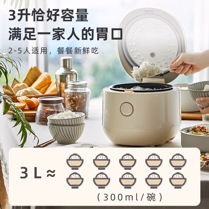 小熊(Bear)电饭煲 电饭锅 家用多功能3升智能防溢预约元釜柴火饭2-3人迷你米饭锅4-5人 DFB-C30L3 3L,京东商城好评率98%,现售价¥199,领取¥50京东优惠券, 实付¥149包邮。 这款Bear 小熊 DFB-C30L3 备长炭电饭煲,3L黄金容量,2~5人家庭够用。上置式触控面板,备长炭元釜内胆,导热锁温,吸附米粒异味,还原柴火饭香味。食品级不粘涂层,方便清洗。配置蒸笼,上蒸下煮更方便,6大智能菜单,一键秀出好厨艺。12小时可预约。