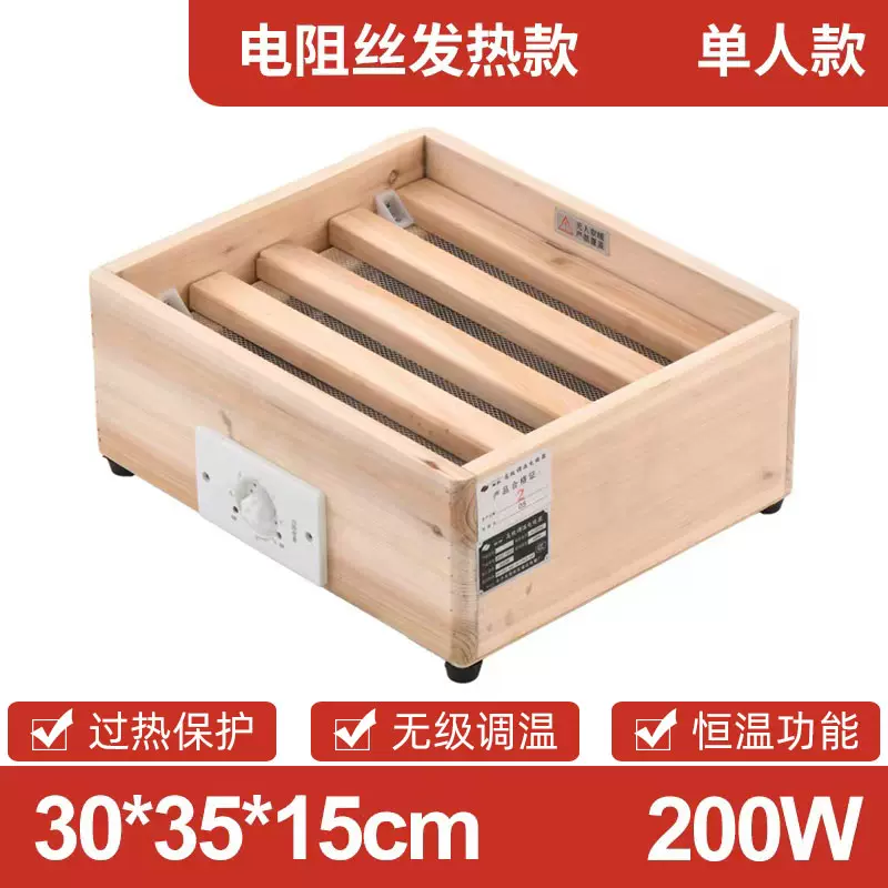 这款前创 香杉木免漆款 烤火箱,精选杉木,木质轻软,易干燥,收缩小,不翘裂,耐久性能好。新一代镍络合金电阻丝,高温环境中的强度高,长期高温运行不易变形,不易改变结构。10小时仅需1度电,以35*30型号为例,最大档位功率200W,中低档约功率100W计算,连续使用10小时约等于1度电(数据源自前创工厂测试)。