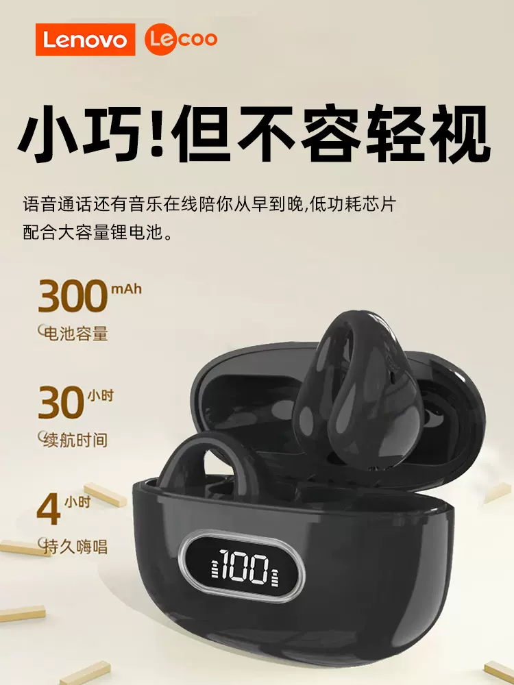 这款Lenovo 联想 EW307 来酷耳夹式无线蓝牙耳机,不入耳全景音,HIFI音质,蓝牙5.3,LED高清显示,10mm大动圈融合PU高分子复合振膜,搭配AAC/SBC高音质解码,缔造卓越聆听,中低音下潜有力、高音利落通透,智能指纹触控,通话智能降噪,随心随意掌控,消减环境噪音,30小时复合续航,生活级防尘防水,日常风雨无需畏惧。