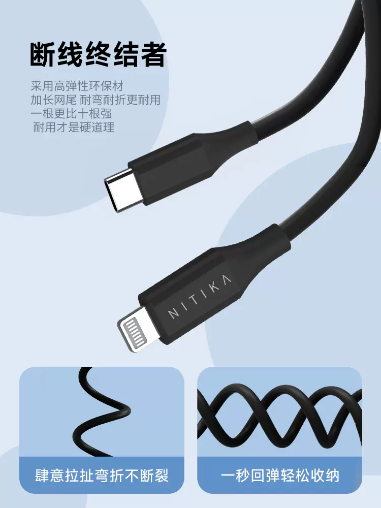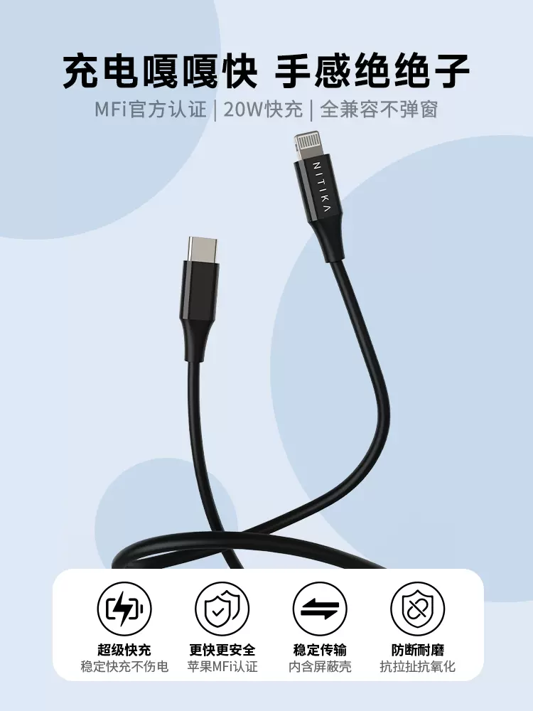 NITIKA 星系源 PD快充苹果数据线 充电线,现天猫星系源数码旗舰店 售价¥29.9,可领取¥10天猫优惠券,折后¥19.9包邮。点此搜索更多天猫/淘宝优惠券。 这款NITIKA 星系源 PD快充苹果数据线,经苹果MFi认证,充电不弹窗,智能芯片,支持PD20W快充,高回弹性液态超软TPE,怎么缠绕都可秒回弹。线尾加固设计,耐折不易断。