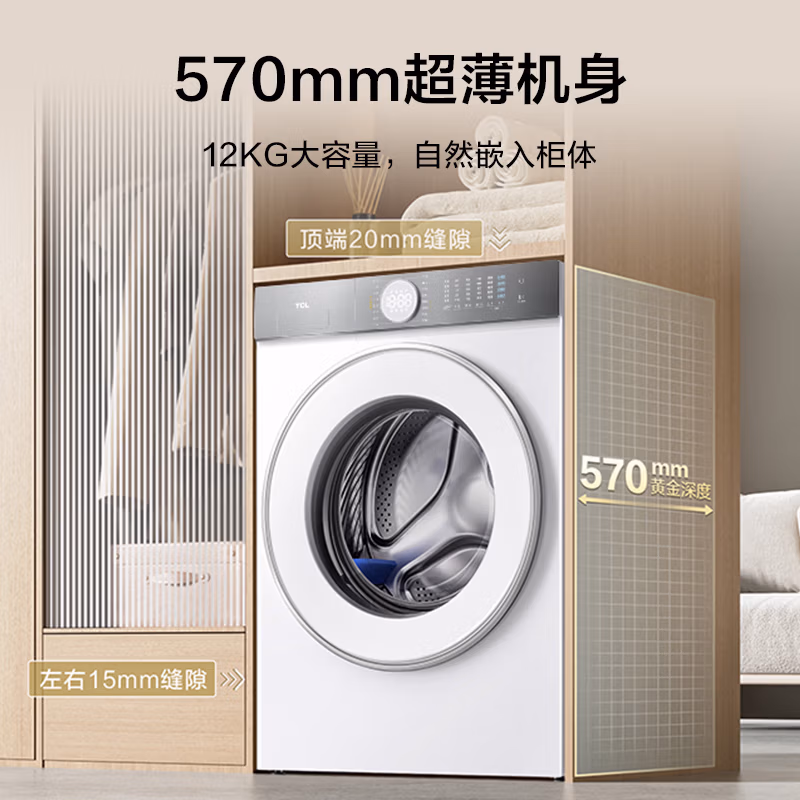 TCL 12公斤超级筒T7H超薄洗烘一体滚筒洗衣机 1.2洗净比 精华洗 540mm大筒径 智能投放 G120T7H-HDI,京东商城好评率99%,现预售价¥3798,需支付定金¥20,31日20点支付尾款,参与满¥2000-500优惠活动,可领取¥2000-300京东优惠券,¥3000-300优惠券,Plus会员使用¥1500-120超级券,以旧换新补贴¥330,实付¥2212.81包邮。