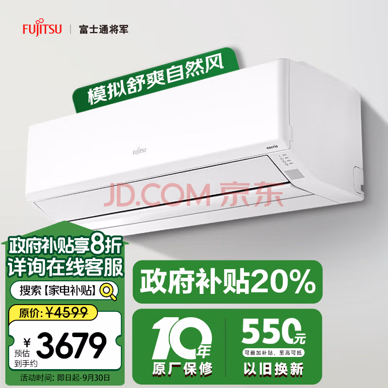 富士通 11-16㎡适用 新1级能效 1匹 诺可力T空调 以旧换新 空调挂机ASQG09KTCA (KFR-25GW/Bpkta),京东商城好评率99%,现售价¥4599,领取¥100京东优惠券,叠加Plus会员居家特权卡¥499-40优惠券(没开过的需要花9.9元开通),领取四川国家补贴20%(全国都可领可用,下单直降),实付¥3552.48包邮。