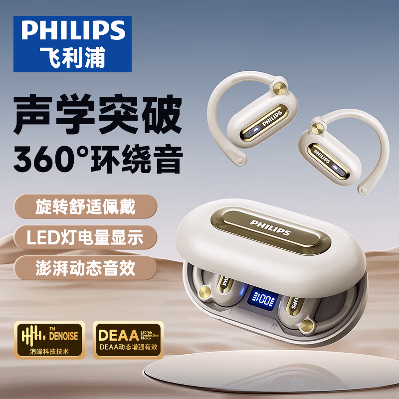 飞利浦(PHILIPS)蓝牙耳机挂耳式骨传导概念开放式跑步运动耳机通话降噪适用于华为苹果小米TAT4769,京东商城好评率98%,现售价¥229,加入店铺会员后优惠价¥219,每满200元减50元,可领取¥20京东优惠券,Plus会员实付¥125.73 包邮,耳夹式耳机折后也是好价。点此搜索更多天猫/淘宝优惠券。