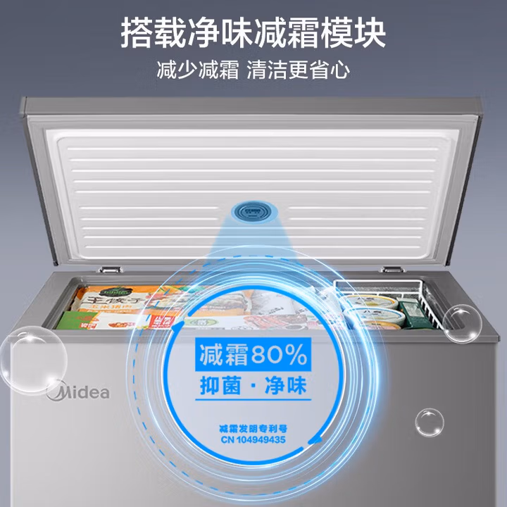Midea 美的 BD/BC-200KMF(E) 冷藏冷冻转换冰柜,六档宽幅变温,一机多用,按需调节。四面环绕制冷,畅享均匀澎湃制冷体验。专利减霜80%,减少水分进入,平衡气压差箱内食物干爽新鲜,减少黏连,存取方便。-28℃深冷,急锁食材鲜嫩。150小时断电保护,意外断电,货品不化冻。