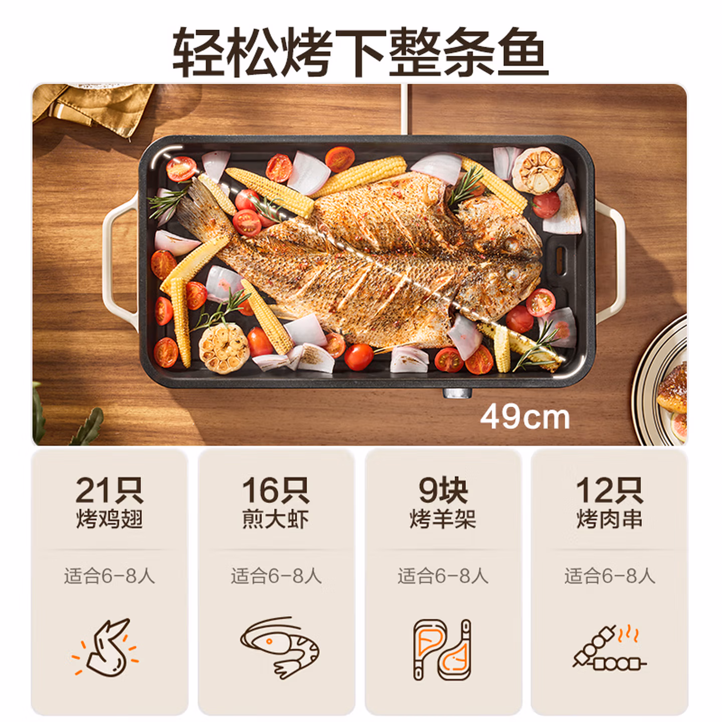 这款Supor 苏泊尔 GJ4525P812 电烧烤炉,一次可烤多种食材,满足6-8人聚会畅享,朋友聚会不必久等 ,2200W大功率,超猛火速烤,旋钮无级调节温度,45cm可拆超大烤盘,可烤整条鱼,抗菌不粘涂层,99.9%抗菌率,分区料理设计,荤素分区不串味。