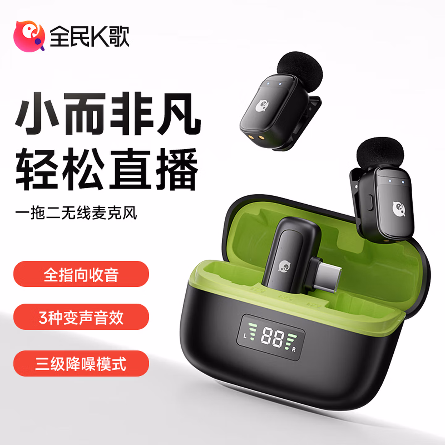 全民K歌 无线麦克风一拖二无线领夹麦克风 手机相机采访vlog直播录音收音麦 MC56一拖二,京东商城好评率100%,现全民K歌旗舰店售价¥199,领取¥120京东优惠券 ,实付¥79包邮。