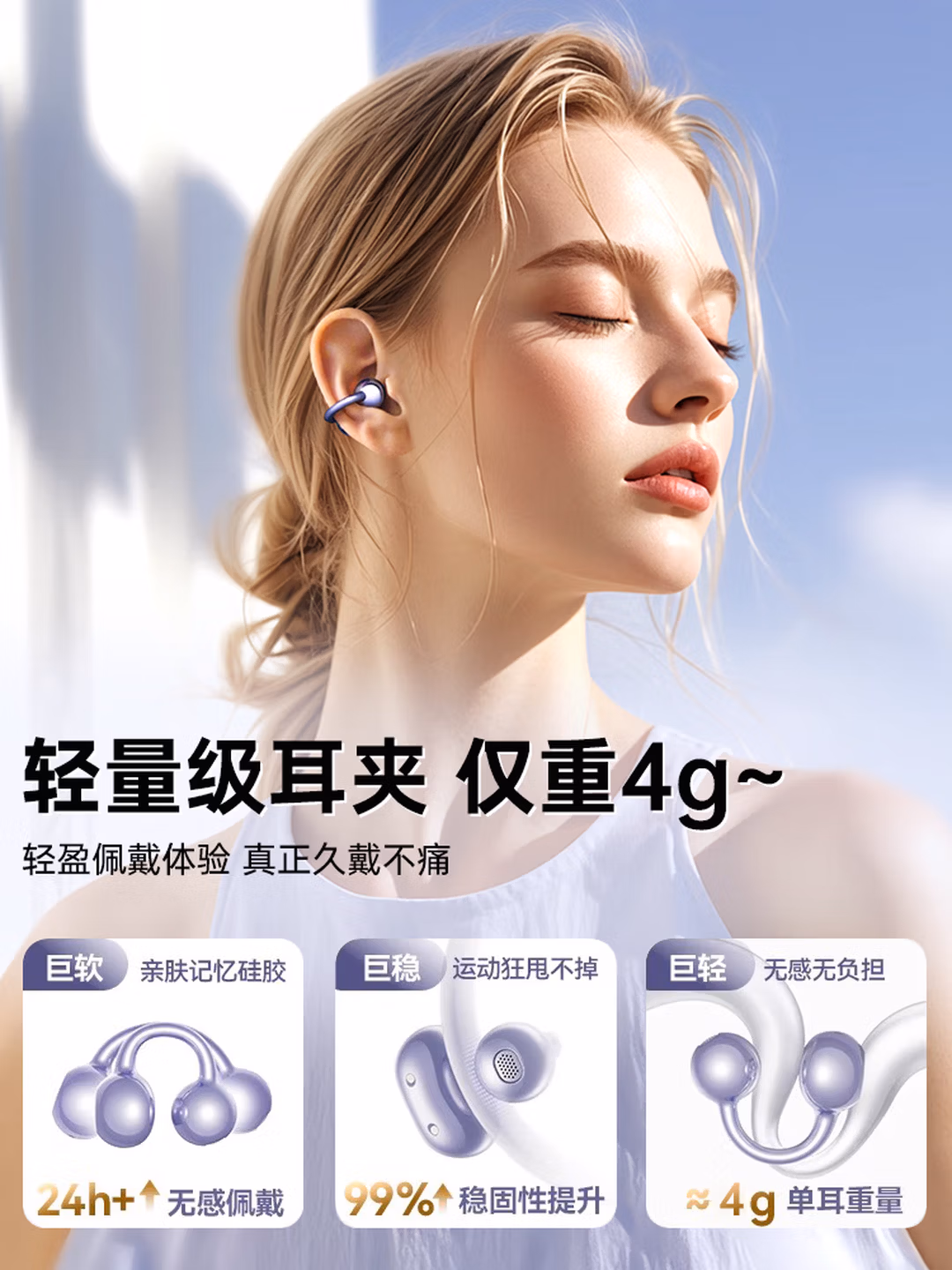 萨勒芬妮【OpenearClip华强北顶配款】蓝牙耳机耳夹开放式无线跑步运动通话降噪挂耳骨传导适用于华为 【流光紫】全景音效丨久戴舒适 超长续航丨超清通话丨AI降噪,京东商城好评率98%,现萨勒芬妮官方旗舰店售价¥288,领取¥220京东优惠券 ,实付¥68包邮。