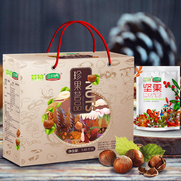 首粮 珍果茗品 进口坚果果干春节大礼包,顾客评价4.4分(坚果较少),现天猫 汇沣仁和食品专营店 售价¥128,可领取¥60天猫优惠券,折后¥68包邮,京东商城售价¥98。点此搜索更多天猫/淘宝优惠券。 这款首粮 珍果茗品 进口坚果果干春节大礼包,内含:美国开口榛子100g、澳洲夏威夷100g、泰国龙眼干350g、智利提子干150g、智利西梅300g、伊朗椰枣400g。都是进口坚果果干,大师级设计包装,作为年货送礼不错。