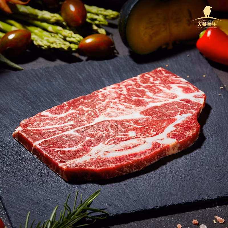 天莱香牛有机上脑原切牛排,肉牛源自新疆博尔塔拉,喝天山雪水,吃有机牧草,48-72个小时排酸,健康美味,谷饲育肥365天,谷物饲养,鲜嫩多汁,天菜香牛为“好吃一点”竭尽全力,天莱香牛牛肉,每一头都是自己养的,认认真真把握每一块肉,通过苛刻的有机食品检测要求从谷草水源到屠宰加工、销售全程有机可查。