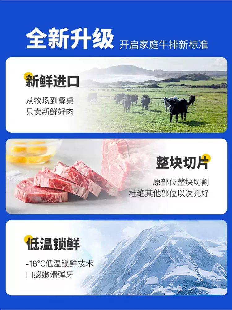 这款安格仕 原切轻腌菲力牛排 ,原料采用阿根廷进口整条新鲜牛肉,原部位切割,纤维组织细嫩,精肉多,脂肪少,原味鲜香,软嫩多汁。