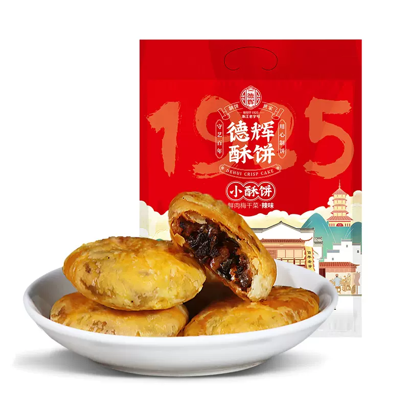 德辉 梅干菜肉小酥饼 ,现天猫 德辉食品旗舰店 280g装售价¥34.9,拍2件减25元,还可领取¥34-20天猫优惠券,折后¥24.8包邮。 这款德辉酥饼,非油炸,纯烘焙,不含防腐剂,精选优质雪里蕻干菜、猪肉、小麦粉、芝麻等,传统手工制作,入口酥脆,鲜香扑鼻。独立小包装,方便随身携带。 金华酥饼,色泽金黄,香脆可口,是浙江省金华著名点心,传统特产,其馅心用干菜为主料,故又名干菜酥饼。德辉是创立于1925年的浙江老字号。