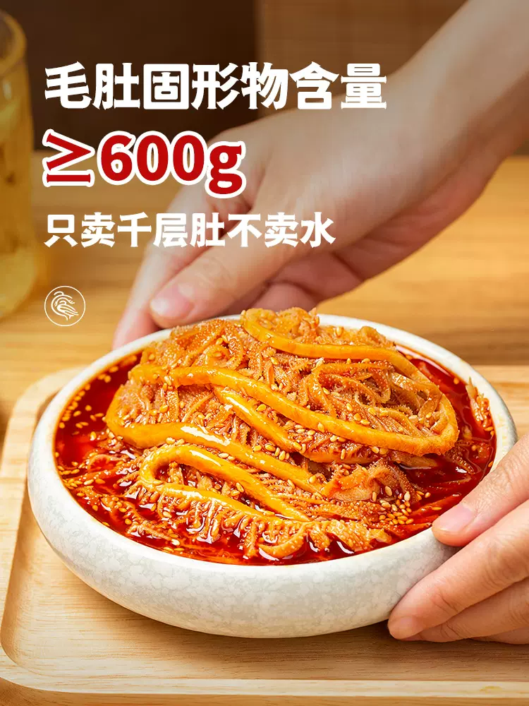 这款廖记棒棒鸡 即食红油麻辣冷吃千层牛肚丝,严选新鲜牛百叶制作,搭配廖记秘制配方红油+料汁,随时随地来一口,鲜爽脆十足,麻辣口感,一口不过瘾,1kg内含牛肚丝860g(毛肚固形物含量≥600g)、红油40g*2包、料汁50g、芝麻包10g。