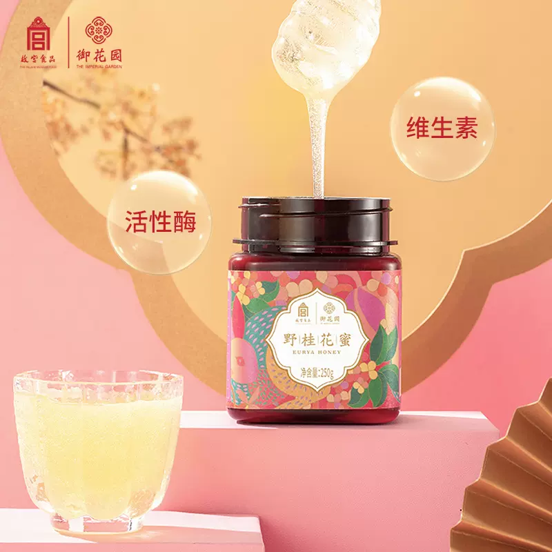 故宫食品 御花园 野桂花蜜 蜂蜜,现天猫御花园旗舰店野桂花蜜250g装售价¥88,下单立减叠加领取¥32天猫优惠券,折后¥37.5包邮。点此搜索更多天猫/淘宝优惠券。 故宫食品 御花园 野桂花蜜 蜂蜜,,严选幕阜山脉冬季野桂花蜜,精选原蜜无添加;波美度≥42,15天成熟期特级原蜜不提取无添加,蜜质纯净,清雅不腻,是不折不扣的上等蜂蜜,世称“蜜皇”。
