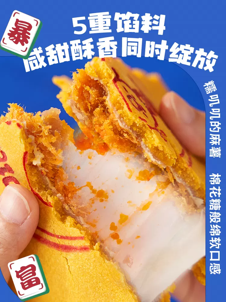 这款三味酥屋 闽南暴富大月饼 状元饼,蛋黄、肉松、芋泥、麻薯、新西兰安佳黄油、奶油为原料制作,多段式烘焙,咸甜酥香,口感细腻,地道闽南味。