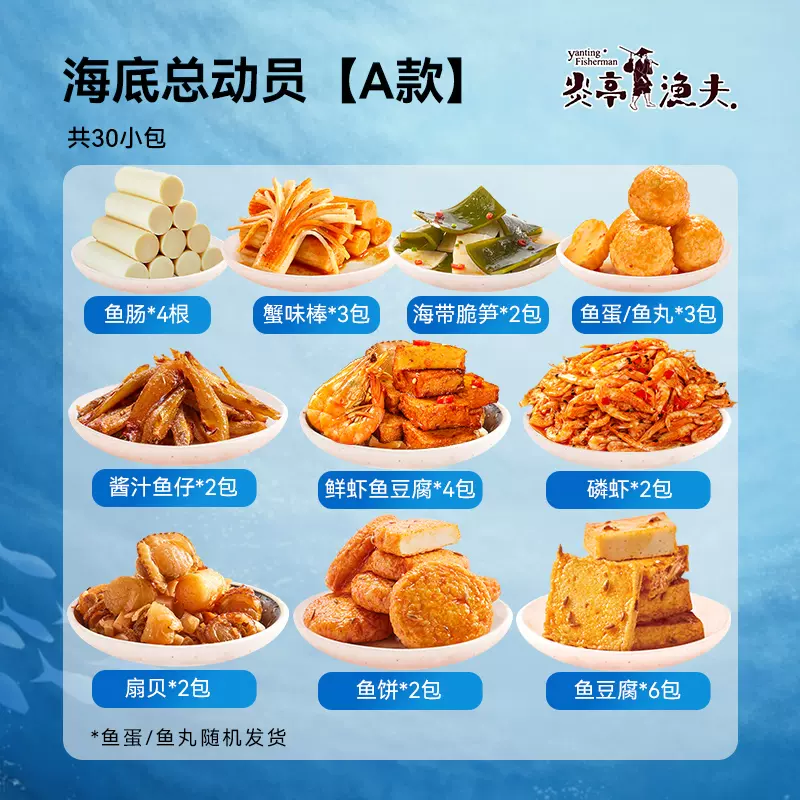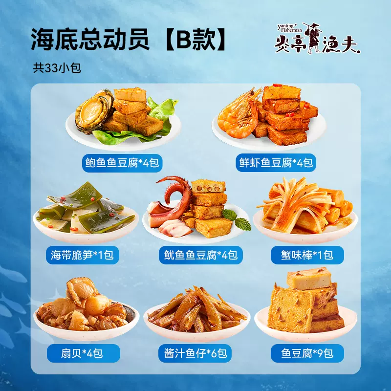 炎亭渔夫 海味零食海底总动员,现天猫炎亭渔夫食品旗舰店售价¥29.9,可领取¥10天猫优惠券,折后¥19.9包邮。 这款炎亭渔夫 海味零食海底总动员,多种爆款,咸甜荤素样样有,缤纷海味,鲜香“海鲜诱惑”一包满足是有口味,老少皆宜,美味嚼不停,野餐露营一包搞定。