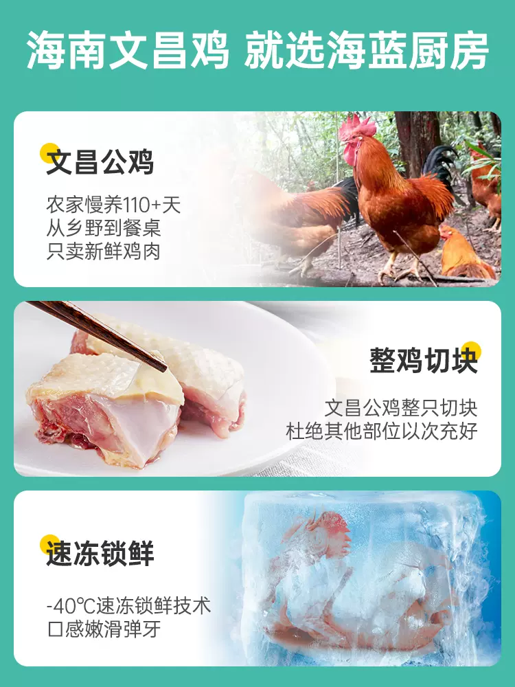 这款海蓝厨房 海南文昌公鸡,种苗来自文昌鸡保种育种场,山林散养+科学喂养110天,养出健康好鸡。生长在四季如春的海南岛、远离污染的椰林之间给它一个空间,让它自由觅食,一早一晚喂养小量谷物饲料(椰子肉、木薯、米糠等自然谷物),逐日养成健康美味的好鸡肉。-40℃低温速冻锁鲜技术,留住美味,每一块鸡肉都原汁原味。