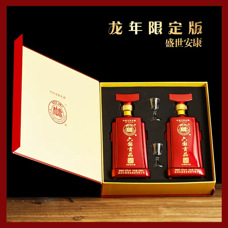 这款白水杜康 龙年限定版 六国贡品盛世安康 52度浓香型白酒礼盒 ,含6瓶白酒+3个高档礼盒+3个礼袋+6个酒杯。水、高梁、小麦、大麦、豌豆等原料精心酿造,酒质清洌无杂质,酒花细密浓稠,久而不散;体丰满堦调的独特风格,香气悠久,酒味醇香,入口甘甜,入喉爽静。