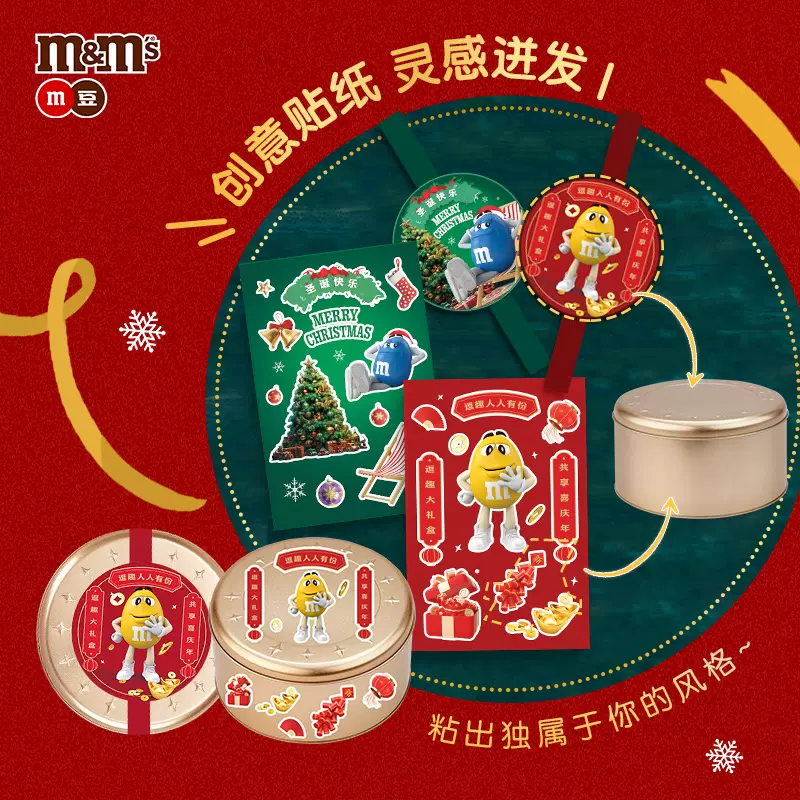 M&M’S 玛氏 铁罐巧克力年货礼盒 326g,现天猫mms官方旗舰店 百亿补贴售价¥47.9,需手机端够买。点此搜索更多天猫/淘宝优惠券。 M&M's是美国第一巧克力豆品牌,属于玛氏食品旗下,其“只融你口、不融你手”的著名广告,被广告周刊评为2004全美第一广告名句,秘诀在于它的糖衣,有了这层糖衣,拿在手上不会沾粘,放入口中很快就溶化。