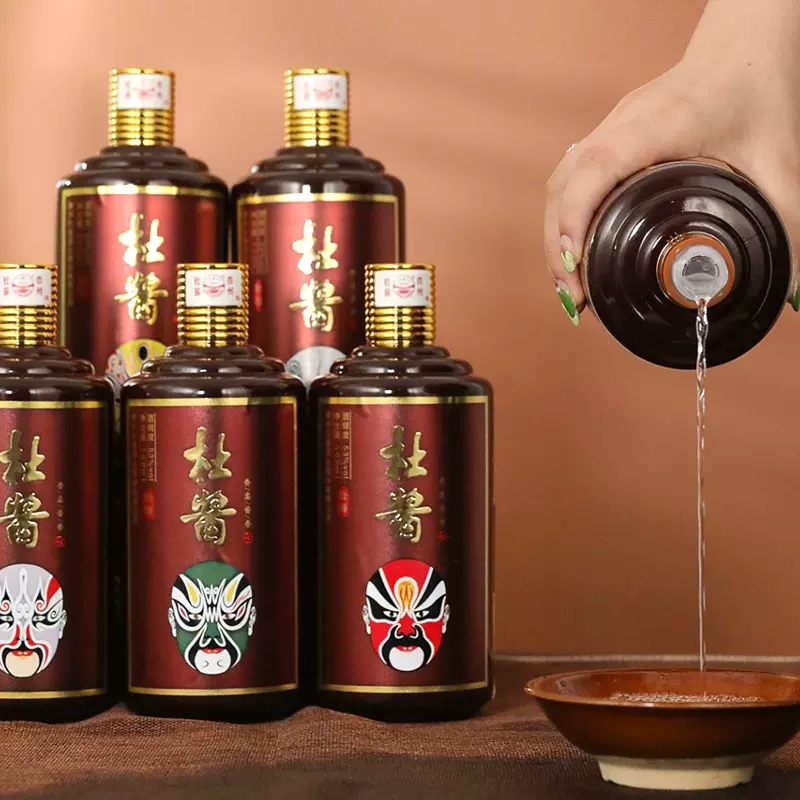 这款杜酱 脸谱 53度贵州窖藏老酒酱香型白酒礼盒 ,执行标准GB/T26760-2011(优级),选用红缨高粱、小麦、水为原料,经12978工艺酿制而成,香柔酱香醇厚饱满,口感纯净甘冽,过杯留香持久不散。