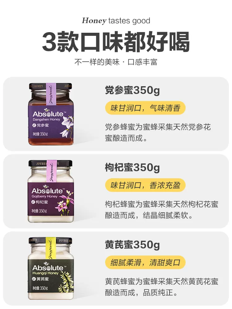 九蜂堂 党参蜂蜜,现天猫九蜂堂旗舰店售价¥68,可领取¥58天猫优惠券,实付¥10包邮,质保期约至2024年11~12月,正常都可吃完。点此搜索更多天猫/淘宝优惠券。 这款九蜂堂 党参蜂蜜,为蜜蜂采集天然党参花蜜酿造而成,味甘润口,气味清香。 九蜂堂 源自1997年,是江苏省名牌产品,中国养蜂协会理事单位;从蜂场、原料、中间过程到成品,九蜂堂建立了全程编号体系,每一桶原料都对应每一个标签,明确其品种、产地、蜂农、采收日期,把控每个环节,保证每一瓶蜂蜜都可追溯至源头。