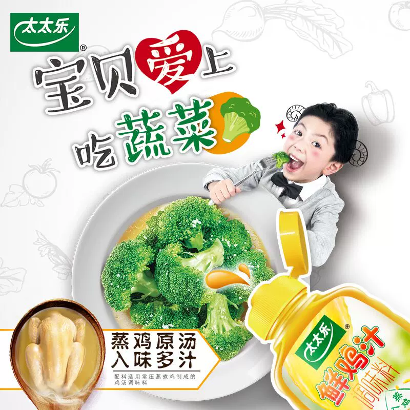 太太乐 松茸鸡汁+鲍鱼鸡汁+鲜鸡汁 ,现天猫 太太乐旗舰店238g*3瓶售价¥49.9,可领取¥15天猫优惠券,实付¥34.9包邮。点此搜索更多天猫/淘宝优惠券。 这款太太乐 鲜鸡汁 ,蒸鸡原汤,入味多汁,采用粉碎技术使用细胞破壁,释放鸡肉中的鲜味,黄金咸鲜,一步到味;硅胶阀瓶口,控量卫生。