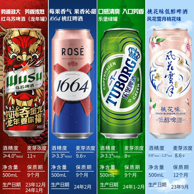 嘉士伯 乐堡+1664桃红+红乌苏+风花雪月啤酒组合 500mL*12,现天猫乐堡啤酒旗舰店售价¥99.9,可领取¥30天猫优惠券,实付¥69.9包邮,含乐堡特醇500ml*3罐+风花雪月桃花500ml*3罐+红乌苏500ml*3罐+1664桃红500ml*3罐。点此搜索更多天猫/淘宝优惠券。