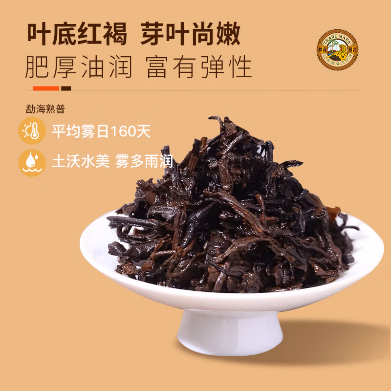 虎标中国香港品牌普洱熟茶 勐海普洱熟茶200g年货礼盒送礼,京东商城好评率99%,现售价¥108,满1件打5折,拍2件参加跨店每满¥200-30活动,领取¥5京东优惠券,年货节主会场领取¥200-20补贴券,实付¥53包邮。 虎标 勐海普洱茶熟茶饼 铁盒装,源自云南西双版纳勐海镇,由云南大叶种晒青茶制成,饼形端正,松紧适度,条索清晰,里外如一,红褐乌润,金毫显露,冲泡后茶汤红浓透亮,余韵绵长,叶底褐红,芽叶尚嫩,浓醇柔和,细腻饱满。