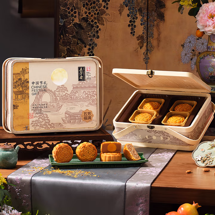 五芳斋 中秋节月饼礼盒中华老字号 广式蛋黄莲蓉豆沙五仁月饼礼品 【典雅竹篮x640g8饼】福满礼篮,京东商城好评率98%,现五芳斋生鲜旗舰店售价¥56.9,参与每满65元减24元优惠活动,可领取¥13京东优惠券,¥4京东优惠券,实付¥39.9包邮。 五芳斋 五芳福满 月饼礼盒 竹篮款 ,含蛋黄清香莲蓉月饼,五仁月饼,冰糖雪梨味月饼,浓情紫薯月饼,浓香枣蓉月饼,玫瑰红豆沙月饼,玫瑰红豆沙月饼,金沙绿豆蓉月饼,山楂月饼各1个,每个重80克。从细腻的饼皮到饱满的馅料,从繁复五味到同一份团圆味。