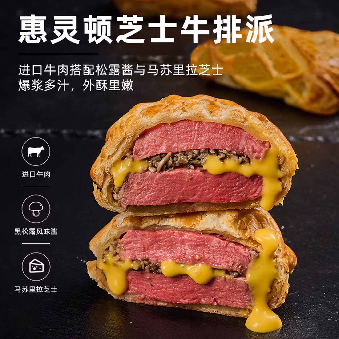 朕宅 惠灵顿芝士牛排派210g+牛排210g组合装,京东商城好评率96%,现百亿补贴价¥64.3,领取¥5京东优惠券 ,实付¥59.3包邮。 这款朕宅 惠灵顿芝士牛排派,进口原切牛肉搭配松露酱与马苏里拉芝士爆浆多汁,于面团中增添浓郁黄油,法式经典酥皮,入口酥松掉渣,层次丰富,外酥里嫩,浓郁飘香层次丰富。
