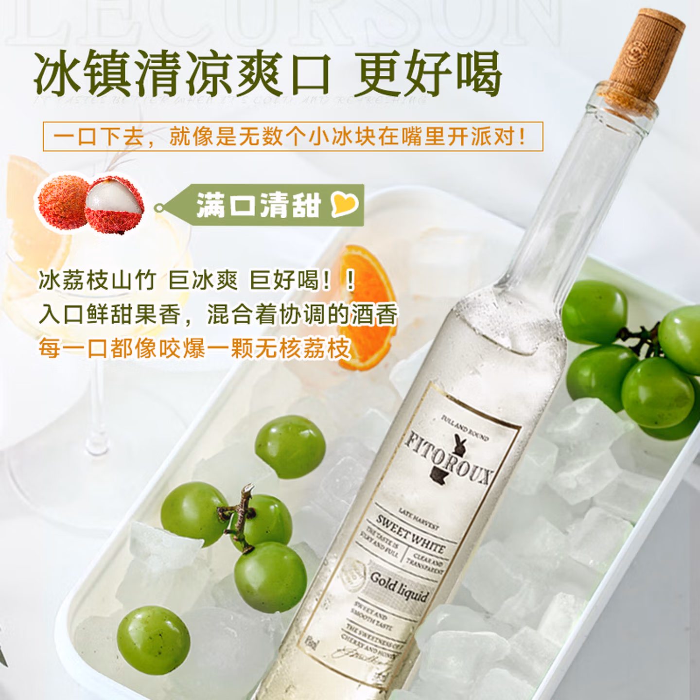 这款露颂 荔枝山竹冰 菲特瓦晚收甜白葡萄酒,产地法国,带有浓郁的荔枝、山竹等热带水果香气,仿佛将热带果园的芬芳融入酒中。口感甜美醇厚,晚收葡萄的高糖度使得酒液甜度较高,酸度相对较低,入口时如丝般顺滑,余味悠长而甜蜜,充满了热带水果的甜蜜韵味。适合在浪漫的约会之夜或与闺蜜分享甜品时饮用,为甜蜜的时光增添更浓郁的氛围。8度微醺,每一口都是对味蕾的温柔告白,甜而不腻。冰镇清凉爽口,更好喝。
