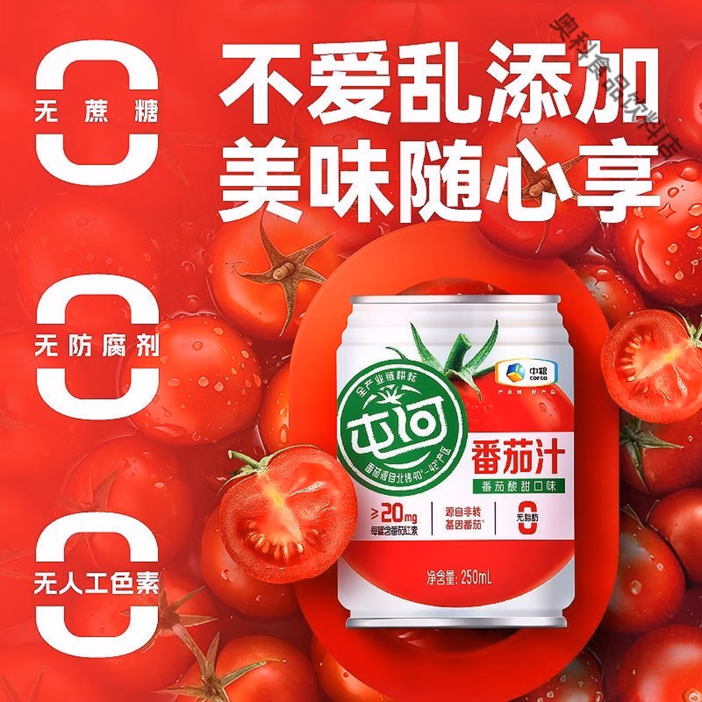 屯河【番茄果蔬饮料】中粮屯河250ml罐装番茄汁无蔗糖健康果蔬汁饮料 番茄汁250ml6罐,京东商城 奥科食品饮料店 售价¥¥34.3,领取¥1京东优惠券 ,实付¥33.3包邮。 这款中粮屯河 番茄汁,配料只有番茄汁和水,选用北纬42°新疆、内蒙黄金番茄产地番茄,高达20℃的昼夜温差,日照超过1800小时,200天自然成熟,非反季番茄。1罐含≥20mg番茄红素,约为5个50g的番茄中番茄红素含量,马口铁罐装,长效保鲜,随时随地享受元气生活。