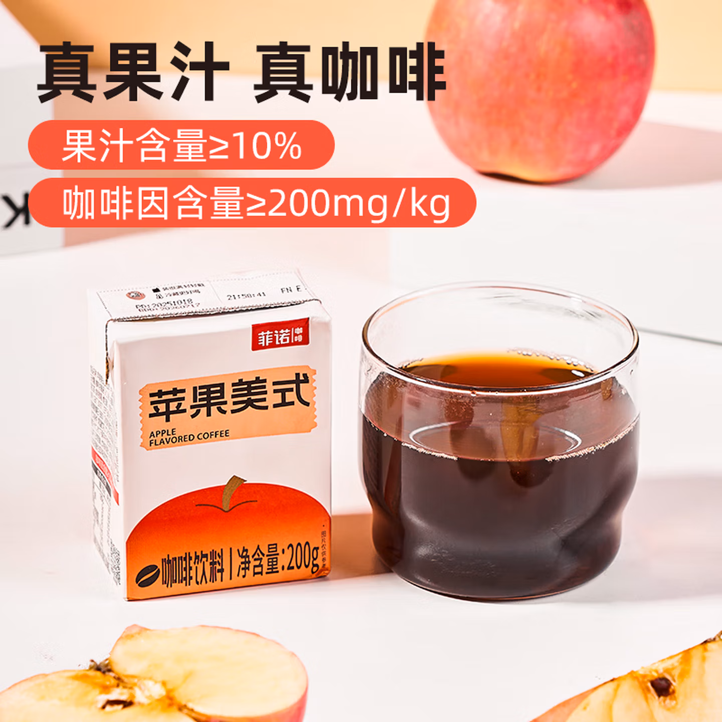 菲诺苹果美式咖啡 100%阿拉比卡咖啡豆 0脂肪真果汁 200g*12盒,京东商城好评率99%,现售价¥35.3,下单立减叠加领取¥17京东优惠券 ,Plus会员95折 ,实付¥14.77包邮。柠C美式咖啡饮料贵2元。