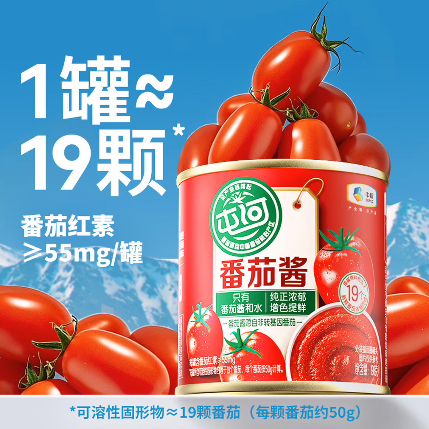 这款中粮屯河 番茄酱 ,配料只有番茄和水,1罐≈19颗番茄,不添加人工色素、防腐剂、甜味剂,可溶性固形物含量22~24%。特选北纬40°新疆及内蒙河套平原番茄黄金带200天自然成熟番茄制作,日均15小时日照+天山雪水灌溉,番茄红素含量≥55mg/罐,是普通品种的4-6倍。马口铁封装工艺,密封性、避光性良好,能长时间保持番茄酱的品质。