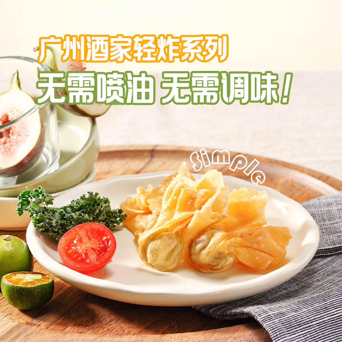这款广州酒家 一口酥云吞,广酒专研配方+制馅技术,肉添加量≥60%,皮薄约0.4mm,广式轻炸工艺,滤油系统+脱油工艺精准控油,四段控温,锁住营养&水分,以“秒”控时,口感酥脆,无需喷油,无需调味,空气炸锅5分钟即享大师风味。
