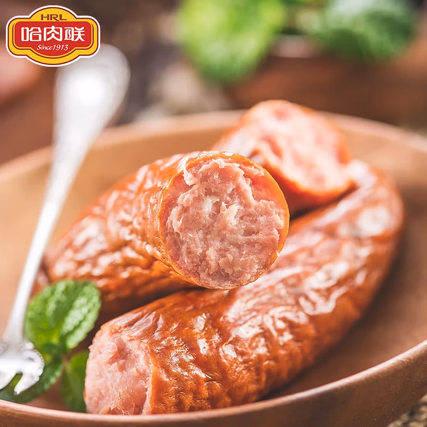 这款哈肉联 醇享红肠,自有屠宰场精选优质冷鲜猪肉,添加牛肉,肉含量高,淀粉含量低,天然猪肠衣灌制,传统工艺果木熏烤,独特烟熏味,混杂淡淡蒜香。独立锁鲜包装,随时随地想吃就吃。