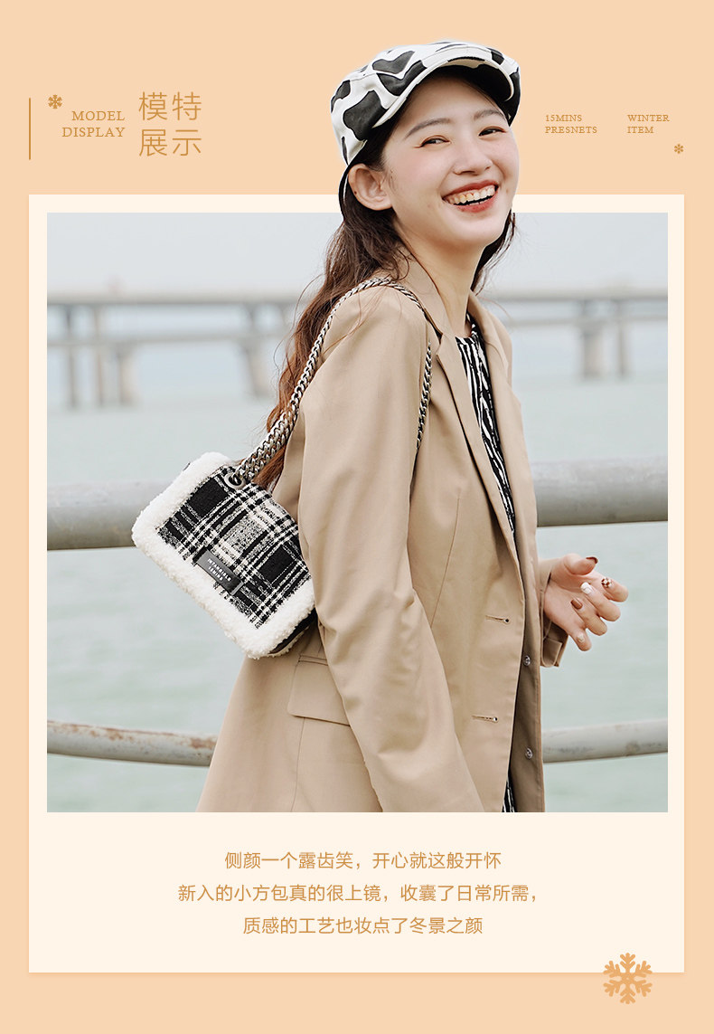 百丽国际旗下 15mins 21年冬季新款 女式毛边拼接单肩包 天猫优惠券折后¥239包邮(¥369-130)2色可选