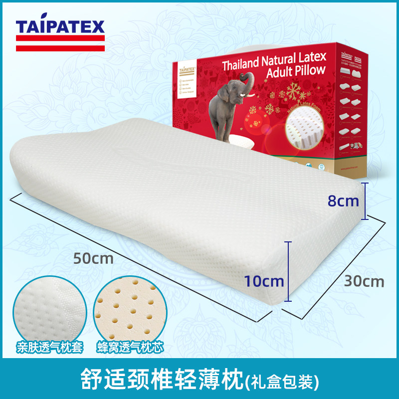 优惠 泰国进口 TAIPATEX 天然乳胶枕 舒适颈椎轻薄枕 聚划算天猫优惠券折后¥119包邮(¥139-10)