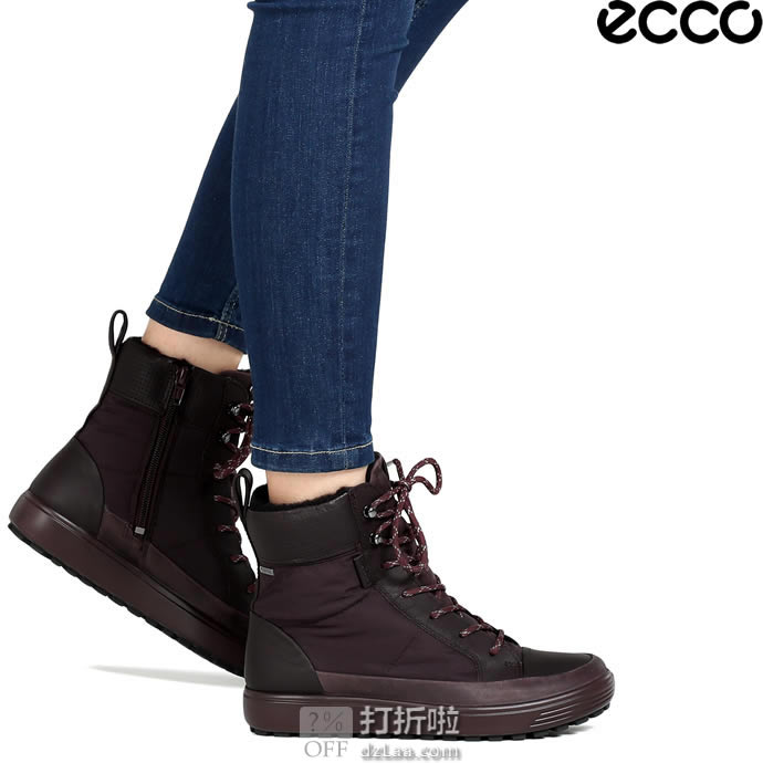 ECCO 爱步 柔酷7号 Tred GTX防水 户外女式高帮短靴 450283,属于柔酷7号系列。低调经典街头风格,混合了绒面革和油质正绒面革皮革鞋面,质感丰富。GORE-TEX®防水结构可确保在潮湿天气条件下足部干爽舒适。可替换毛毡覆盖鞋垫,柔软舒适,贴合足部。牢固外底,结合ECCO FLUIDFORM™技术,为行走的每一步提供出色的缓冲回弹效果,耐磨轻便灵活,在潮湿和结冰的地面也有良好的抓地力。侧面拉链设计,方便穿脱。